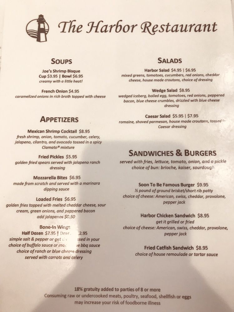 The Harbor Restaurant Menu